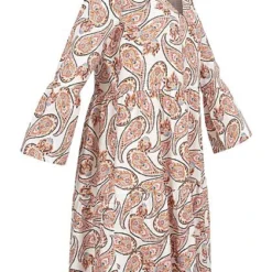 JACQUELINE DE YONG JDY By ONLY Damen Kleid Viskose Blusenkleid Mit V-Neck Paisley Print Weiss Orange